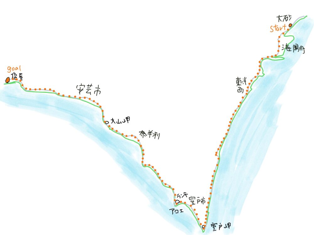 私「室戸岬には、午前中には着くと思います。その後、高知市の近くまで走る予定です。」