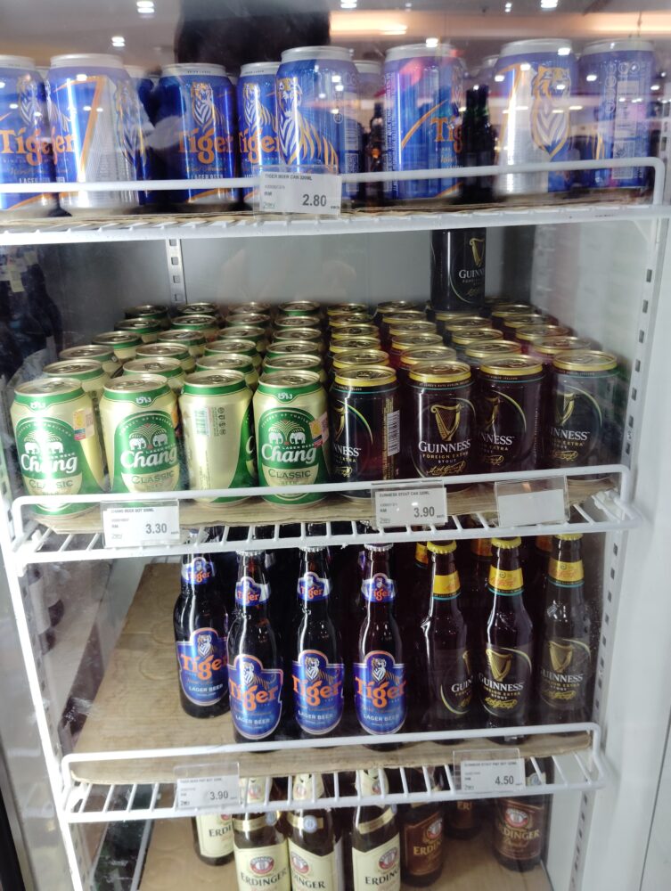 土産物屋さんでビールを販売していて、ビーチ沿いの通りをすべて周り一番安く販売している店を見つけておきました。
