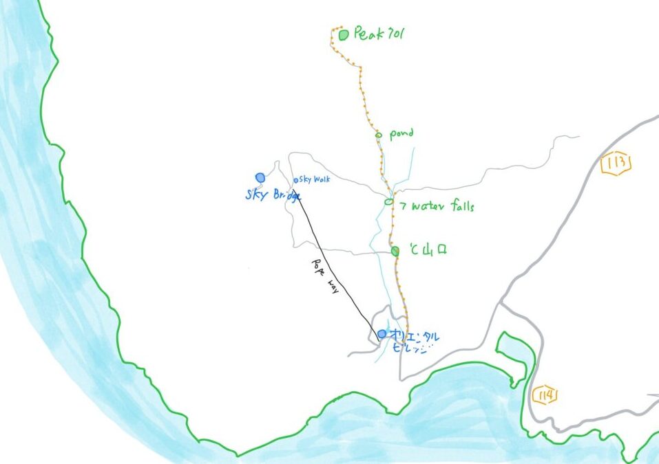 チェナン・ビーチに宿泊、Grabで、スカイキャブ(オリエンタル ビレッジ)まで行き、そこからハイキング登山で標高701m(Peak701)の山に登りました。