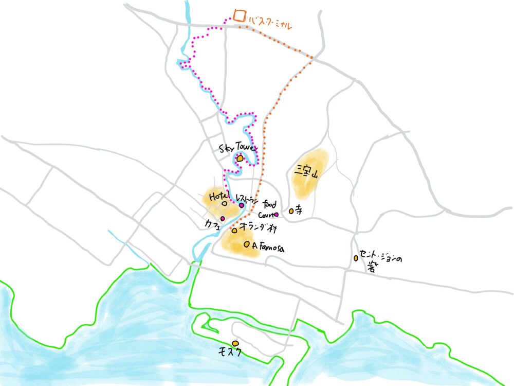 ちなみに、リバーサイド沿いの遊歩道を歩き続け(徒歩で約1時間)で、バスステーションまで行きました。